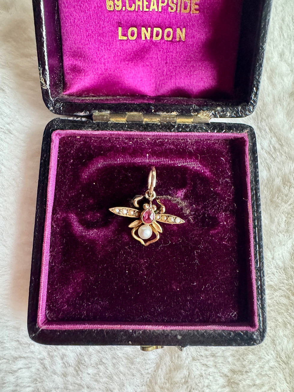 Victorian 15ct Pearl and Ruby Swallow Pendant